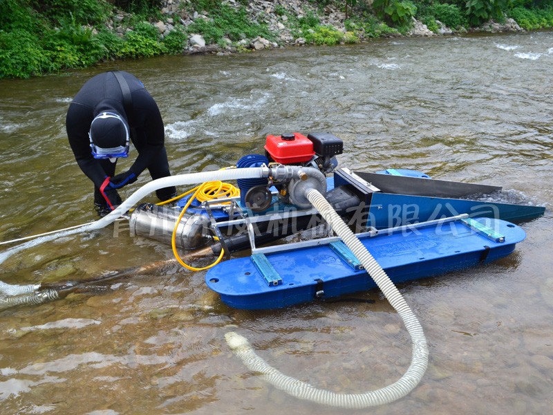虹吸式淘金船是由机器、高压水泵、浮体、射流嘴、管路、选矿溜槽等构成,具有体积小、轻量化、便于拆装运输等特点,是沙金采选行业内投资少、见效快的新选择;可选装空压机系统,潜入水下进行探矿、选矿操作。