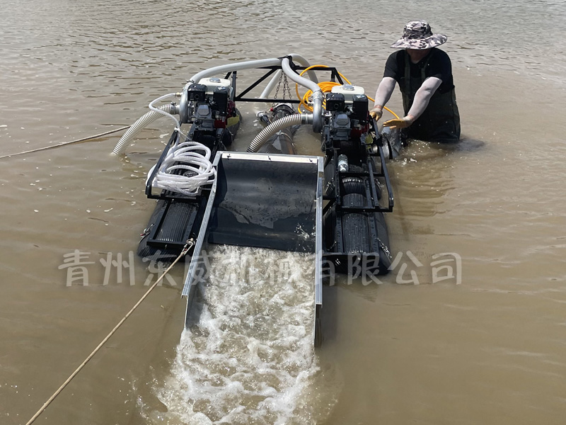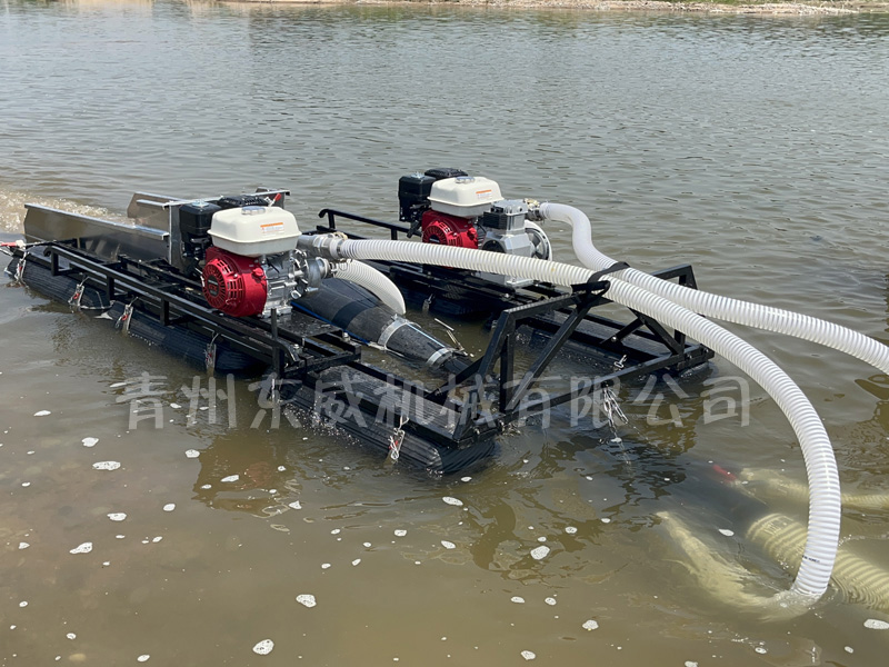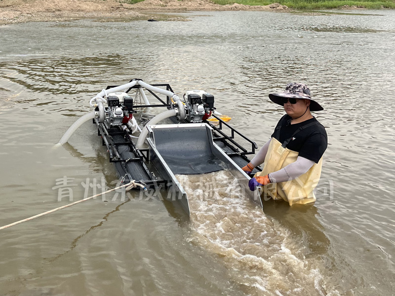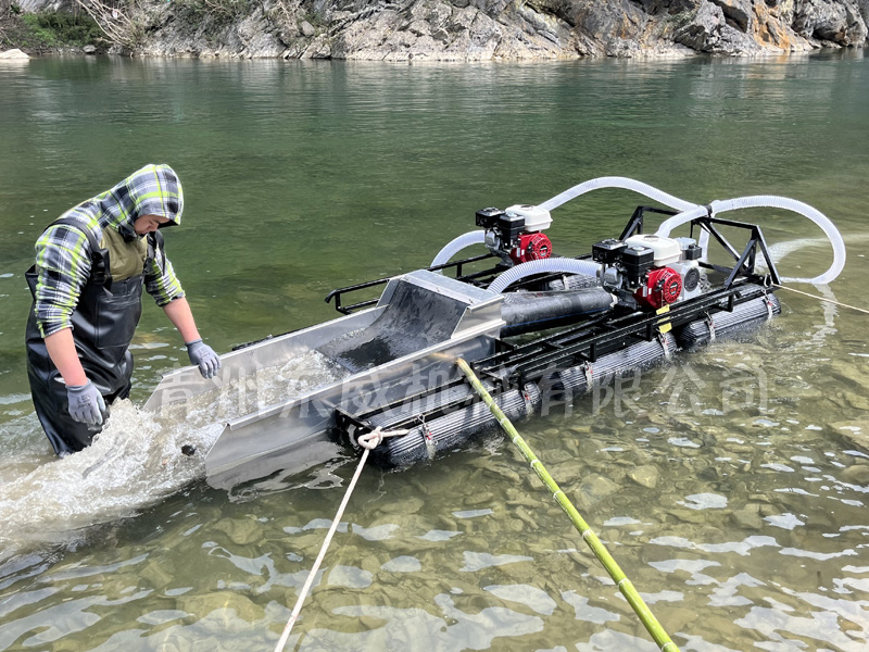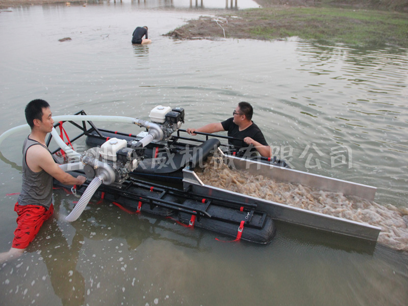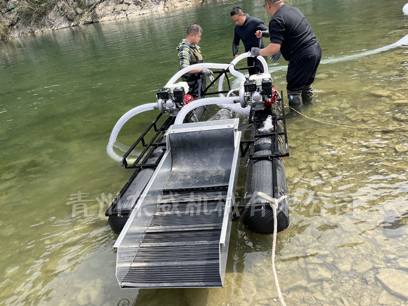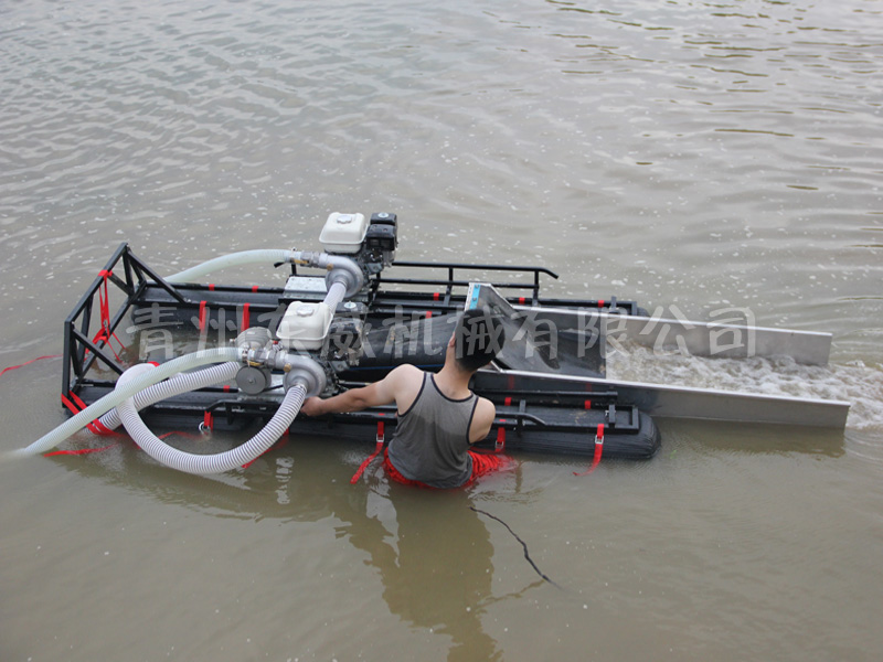 虹吸式淘金船是由机器、高压水泵、浮体、射流嘴、管路、选矿溜槽等构成,具有体积小、轻量化、便于拆装运输等特点,是沙金采选行业内投资少、见效快的新选择;可选装空压机系统,潜入水下进行探矿、选矿操作。