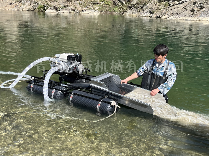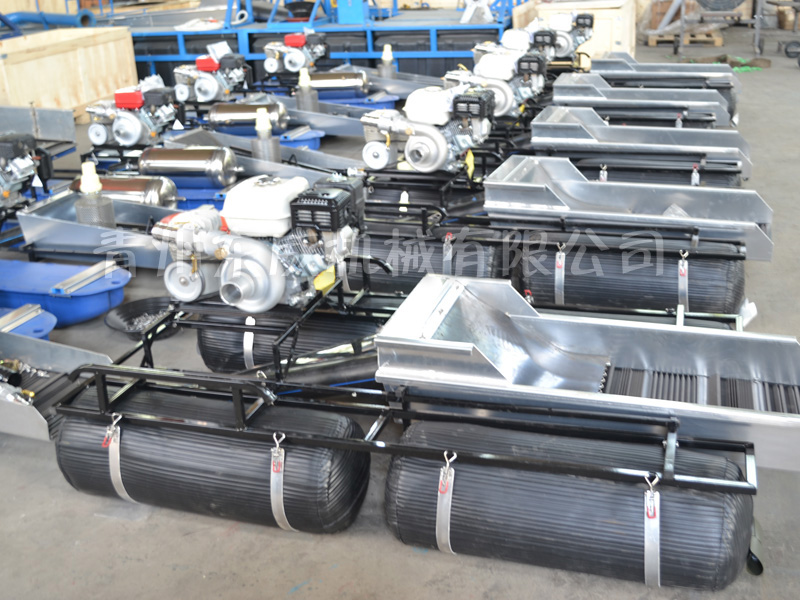 该设备抽沙系统采用新型结构,原料抽取过程中物料不流经泵组,不用考虑泵和叶轮的磨损;沙金重选装置为我公司专门研发的橡胶选金垫,沙金提取效率高,可对毛细金、片状金进行回收;适用于中小型矿场、河道、小溪淘金、探矿作业;