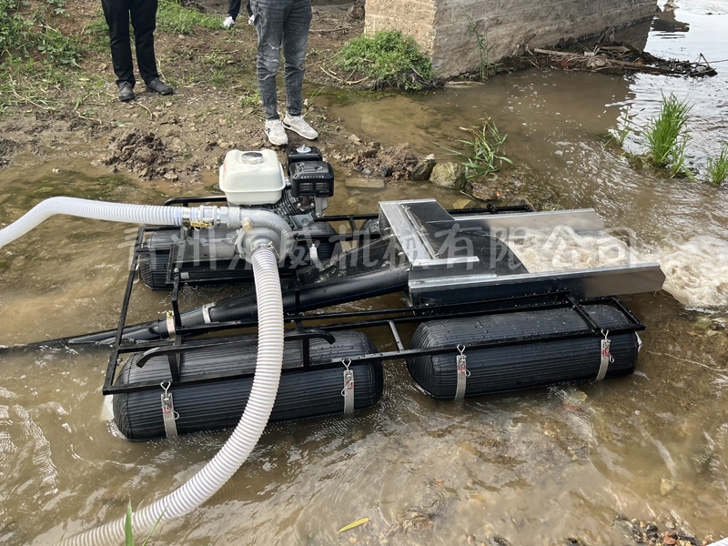 虹吸式淘金船是由机器、高压水泵、浮体、射流嘴、管路、选矿溜槽等构成,具有体积小、轻量化、便于拆装运输等特点,是沙金采选行业内投资少、见效快的新选择;可选装空压机系统,潜入水下进行探矿、选矿操作。