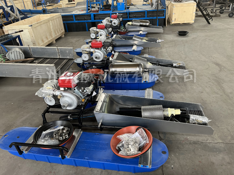 该设备抽沙系统采用新型结构,原料抽取过程中物料不流经泵组,不用考虑泵和叶轮的磨损;沙金重选装置为我公司专门研发的橡胶选金垫,沙金提取效率高,可对毛细金、片状金进行回收;适用于中小型矿场、河道、小溪淘金、探矿作业;