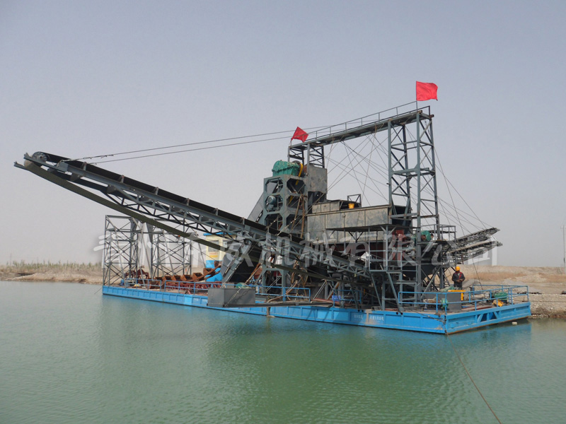 链斗式淘金船为定制型产品,根据用户工况条件设计定制,需要用户提前了解水深、采掘深度、时产量、沙石比例、矿物粒度、尾矿处理等工况数据。
