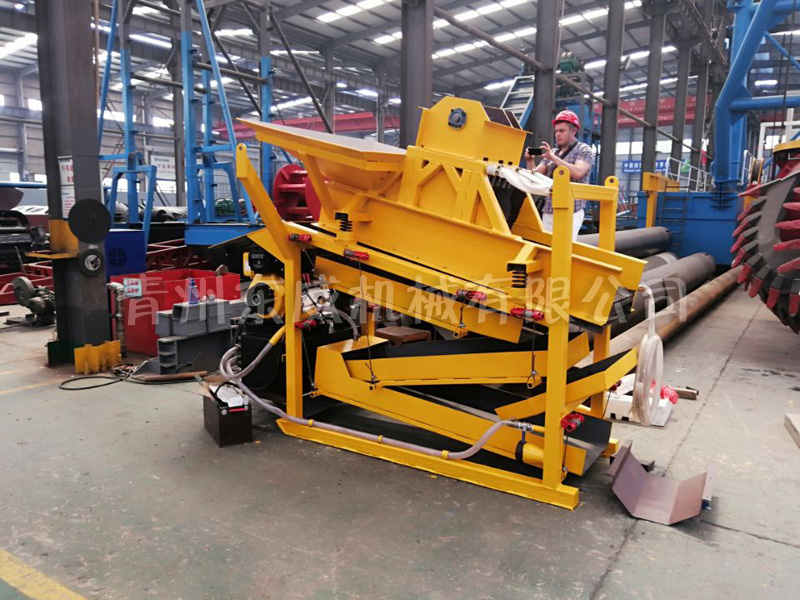 振动式选金机是一个紧凑型、可移动的整体结构。顶部为筛条部分,可以将大块物料隔除,同时物料落入二次筛分机构,充分筛分后,高压力水将沙子冲入溜槽选金。该选金机结构金紧凑、操作简单、低运行成本。明显比市场上其它选金设备有优势,无需丰富的选金经验即可操作。