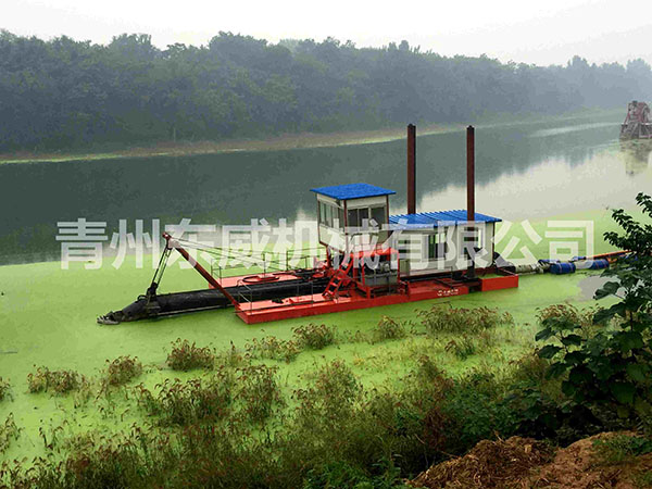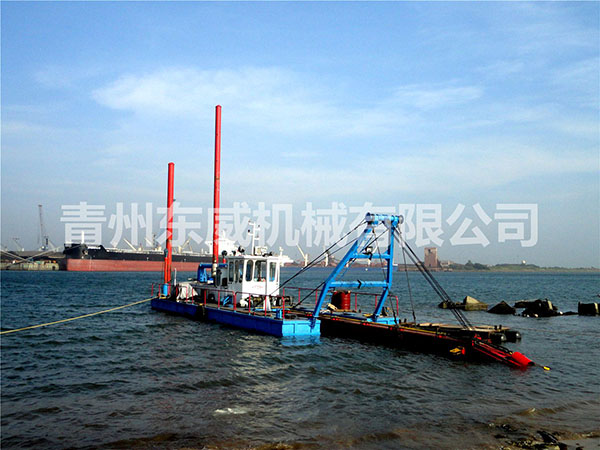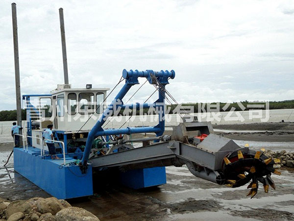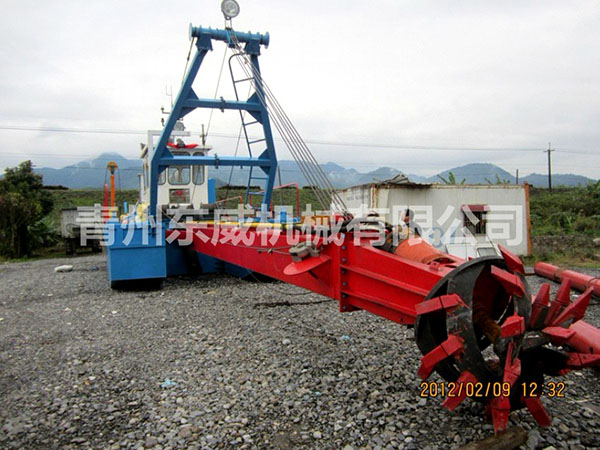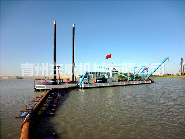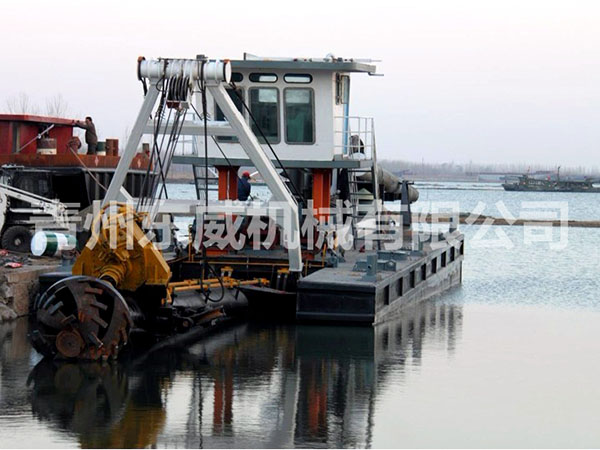 绞吸式挖沙船是目前在河道开采、清淤中运用较广泛的一种船舶,它是利用吸泥管前端围绕吸泥管装设旋转绞刀装置,将河底泥沙进行切割和搅动,再经吸泥管将绞起的泥沙物料,借助强大的泵力,输送到泥沙物料堆积场,它的挖泥、运泥、卸泥等工作过程,可以一次连续完成,它是一种效率高、成本较低的清淤工具,是良好的水下挖掘机械。