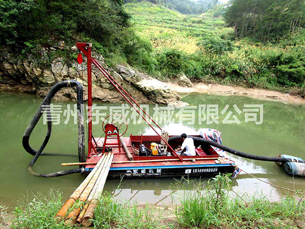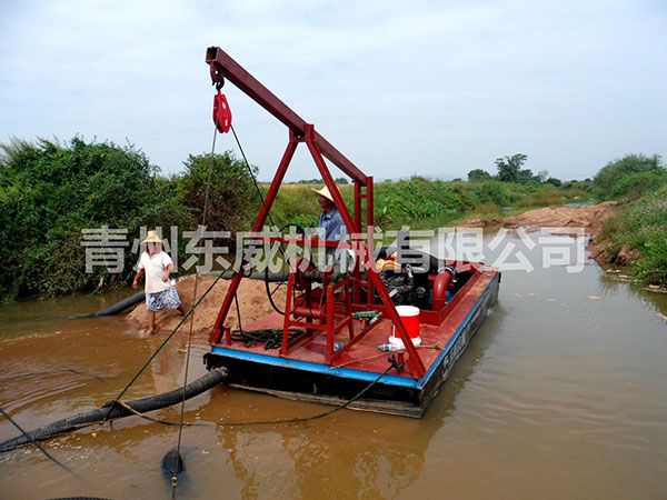 工作原理:利用冲水泵的冲力将沙子冲散,配以抽沙泵强大的吸力将沙子抽出并直接输送至指定地点。