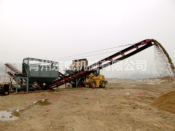 DW-SS型筛沙机由料仓、上料机、滚筒筛、沙子输送机、石子输送机等部分组成,主要针对石头较多的工况,动力部分可选用电机或柴油机带动,根据筛沙机配置,可筛分多种规格物料(比如沙子、1-2cm石子、2-4cm石子、废料等),适用于沙场、河道、建筑工地等工况使用。